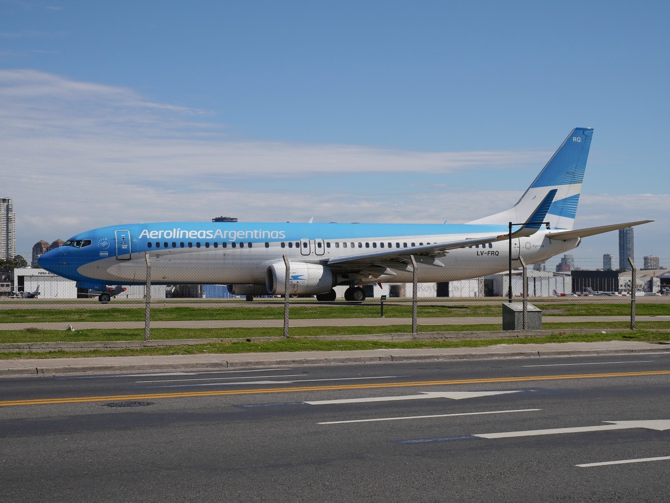 Boeing 737-800, stojący na pasie startowym. Dokładnie takim samym, poleciałem do Chile.