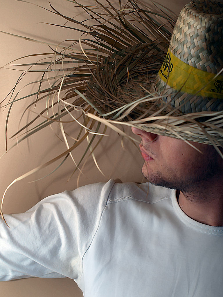 Do pokrowca na garnitur (białego) wsadziłem kawałek sklejki i to powiesiłem na niedziałającej lampie ... aparat ustawiony na wprost modela (mnie) w trybie portretowym a lampa (ustawiona na maxymalna ogniskowa) skierowana wprost na mój parasol ala softbox