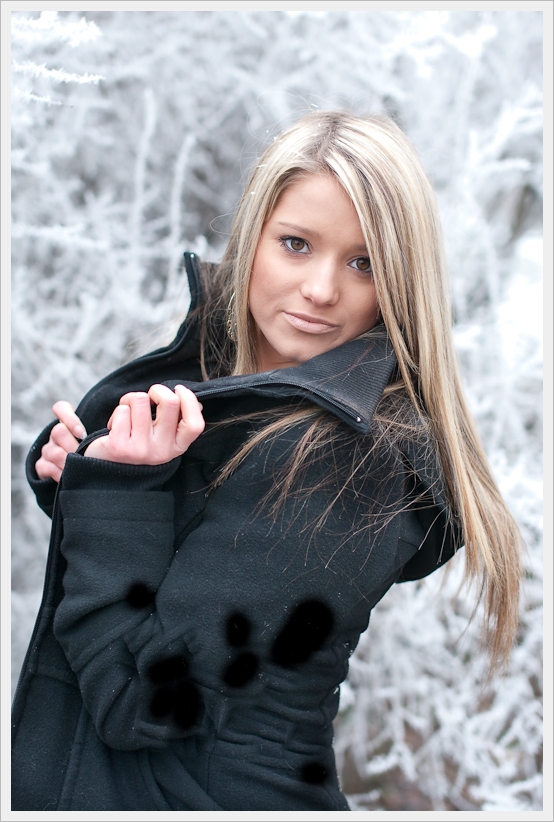 Typowa fotka pamiątkowa z wypadu na sanki. Modelka trochę "utopiona" w kadrze. Ciaśniejsze kadrowanie wydobyłoby na pierwszy plan modelkę.