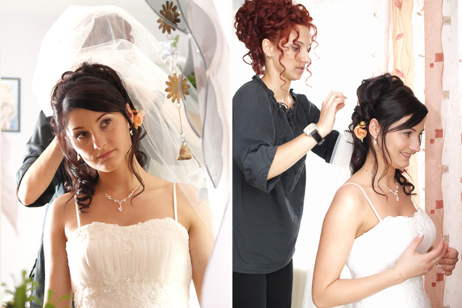 Kiecka w slubniakach to jedna z najwazniejszch rzeczy.Zadna mloda nie wybacza jak wzorek,hafcik,lub inna duperelka jest niewidoczna.U ciebie sukienka mlodej to jedna biala blizej nieokreslona nieostra plama.Moze dlatego tak to inni widza.W rawach to mozesz moze jeszcze wyssac z fotki,jesli w tym miejscu jest jakas info.Popracuj nad kolorem cery mlodej.Mi wychodzi za duzo zoltego.