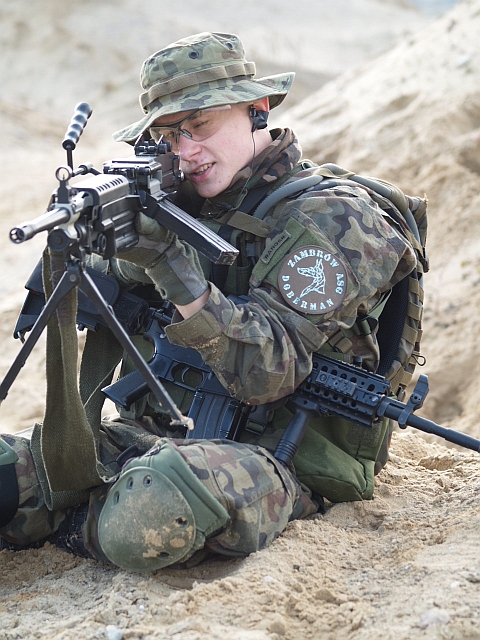W poziomie było by lepiej pana z karabinem chwycić?