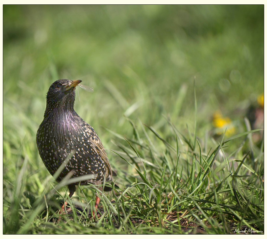 Szpak bardzo fajny, owad smaczny (pewnie) a zdjęcie ciut za jasne