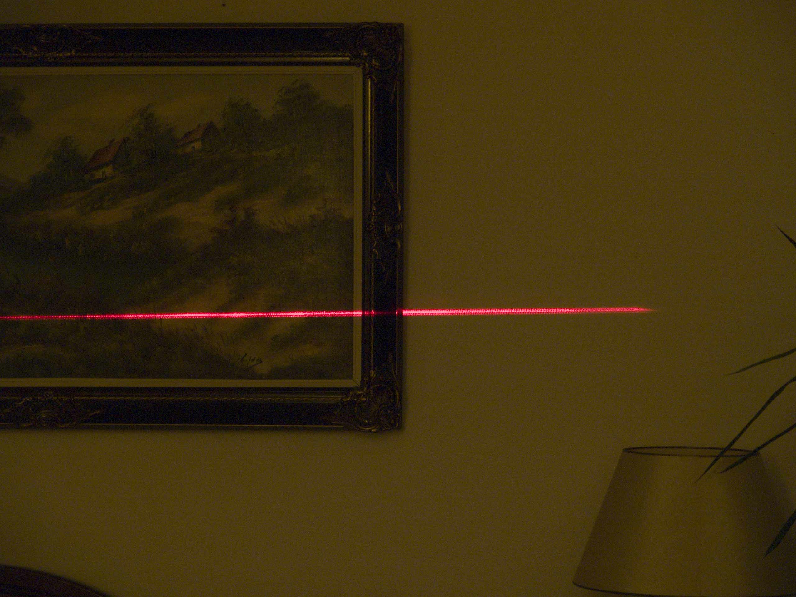 Sam laser nie jest drogi lecz soczewka dająca obraz jak w załączniku.Moim zdaniem powinna mieć kąt 10 stopni lecz za taką (2 lata temu) trzeba było zapłacić około 400 złotych.Zdecydowałem się na tanią soczewkę o kącie około 40 stopni , kosztem utraty znacznej części mocy ograniczyłem kąt świecenia wycinając prostokątny otwór w obudowie pełniący rolę przysłon ograniczających. Za laser z w.w. soczewką zapłaciłem około 60 złotych.