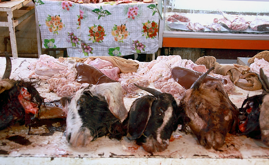Wewnatrz targu sprzedawano tylko mieso i w wiekszosci baranine. Wszystko bylo wylozone na zywca na drewnianych lawach i jak sie przekonalam z barana wykorzystuja doslownie wszystko, a lby (glowy) to specjalny miejscowy rarytas.