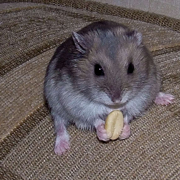 Oj, oj... kto z Was takie żywe sreberko focił? To chomicza miniaturka, dżungarek, waży jakieś 4 dekagramy.A w łapkach ma taką parę, że hej (rekordziści przebiegają na kołowrotku ponad 15 km na dobę). Blok techniczny zdecydowanie za mały na takiego futrzaka, chyba że maluch śpi, a tego poza klatką raczej nie robi.