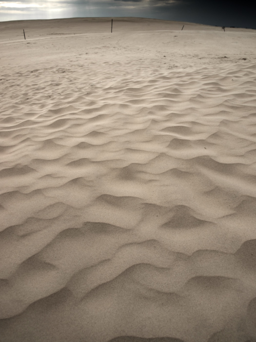 Owszem znaczy, ale ja bym się bardziej skupiła na niebie, niż na piasku, skoro chcesz pokazać burzę.