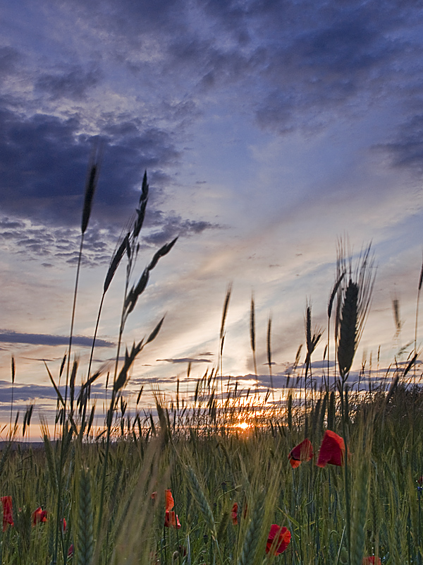 Trochę tak, pomogłam też trochę makom, nasyceniem i jasnością, żeby miały żywszą czerwień, ale generalnie dużo zrobiła szara połówka. Widać zresztą, że była użyta, bo kłosy na tle nieba nie mają koloru, są takie ciemnoszare, ale tylko do granicy z polem, tam już ich łodyżki są zielone. No i tu właśnie przebiegała granica na filtrze. Użyłam Hitecha 0,9nd z twardym przejściem.
