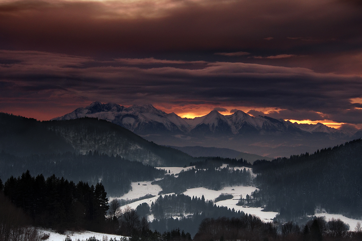 A oprócz Mordoru czarno-biała wersja zachodu z Trzech Koron i jeszcze jeden kicz z przedpola Tatr.