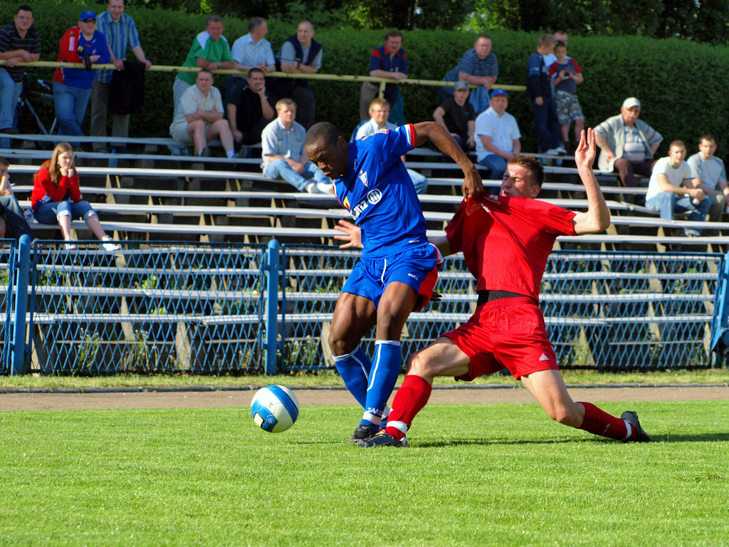 Zdjecie zrobione 40-150 podczas testowania nowych graczy przez Gornika Zabrze w sparingu z walką Makoszowy.