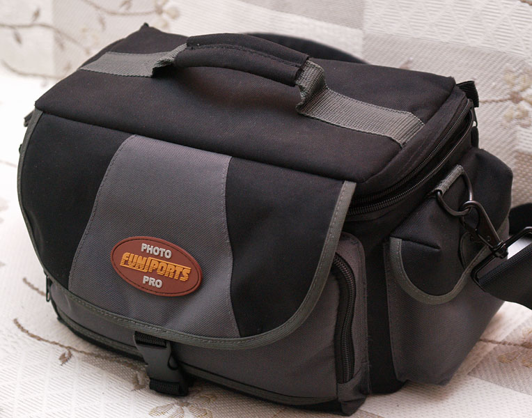 Torba naramienna, na jednym pasku, o wymiarach zewnętrznych 36x24x23cm. Porównanie wielkości torby z aparatem E-510 z doczepionym 14-54mm na poniższym obrazku.