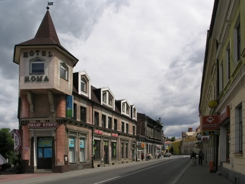 Na drugim zdjęiu jest to samo, ale po korekcie zbieżności perspektywy w GIMPie. Jak mi się wydaje, korekta doprowadziła do pionu (prawie) krawędzie budynków, co moim zdaniem wprowadziło trochę sztuczności na obrazie oraz spowodowała spadek ostrości szczególnie zauważalny w głębi.