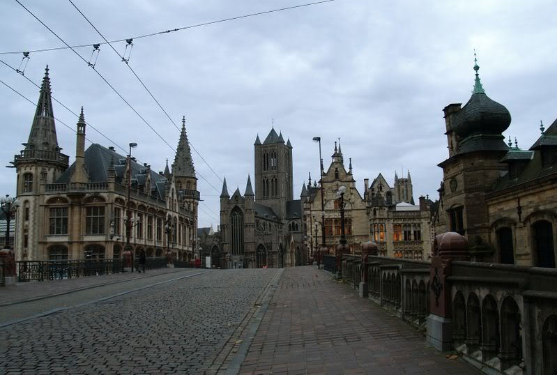 w jesienno-zimowy wieczor napotkalem na spokoj w centrum jednego z najbardziej turystycznych miast Belgii - Gandawie. Piekne miasto, pelne ciekawej zadbanej, wypielegnowanej architektury. Wysiadl mi akumulatorek, na pocieszenie sie rozpadalo, wiec bol byl mniejszy, kiedy zobaczyl poznym wieczorem przepieknie oswietlony kosciol romansko-gotycki sw.Mikolaja, katedre sw. Bawona, kryjacej w swych murach dziela gotyckiego malarstwa flamandzkiego Huberta i Jana van Eyck, klasztory, ratusz, zamek z IX-XII wieku.