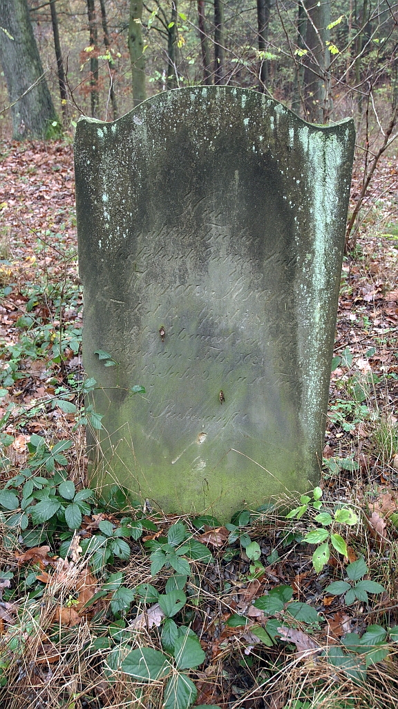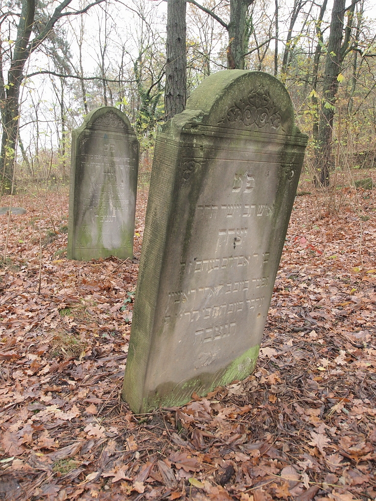 Spacerkiem po kirkucie w Trzemesznie Lubuskim cd... Niestety większość macew uległa zniszczeniu. W całości zachowało się tylko kilka. Dwujęzyczne inskrypcje, po jednej stronie po żydowsku, po drugiej po niemiecku, też w większości są już nieczytelne. Miejsca, w których znajdowały się niektóre groby wyglądają tak, jakby ktoś je celowo rozkopał. Od roku przed pozostałością muru cmentarnego stoi symboliczna tablica przypominająca, że kiedyś był tu kirkut ...