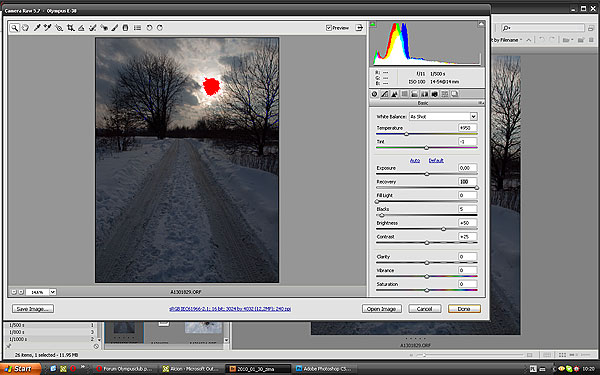 Suwak 'recovery" trochę odzyskuje szczegółów i wypalona plama się nam zmniejsza
