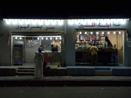 Byłem w Egipcie. Co prawda głównie pływałem tam przez dwa tygodnie na desce, ale wziąłem również poczciwego cyfraka (i tak za dużego, jak na takie zabawy, mały kompakt mi chodzi po głowie), na wszelki wypadek. Okazało się, że był to dobry ruch, bo hotel, w którym mieszkałem i w którym była baza windsurfingowa znajdował się na obrzeżu zwykłego, egipskiego miasta, które po zmierzchu robi się całkiem ciekawe dla ludzi "spoza". Na głównej ulicy i jej okolicach byłem bodaj dwa razy i przyniosłem stamtąd kilka zdjęć. Pierwsze trzy (chyba znajdą się jeszcze jakieś) zamieszczam poniżej. Egipt to bardzo ciekawy kraj, aczkolwiek wydaje mi się, że najlepiej doświadczyć go, poczuć, na własnej skórze - i przy tym uważać, bo np. za żartowanie o wybuchach w trakcie przebywania na lotnisku można spędzić 60 miesięcy w egipskim więzieniu. Taka oto informacja dla turystów wisiała przy kontroli bagażu. A teraz zdjęcia.