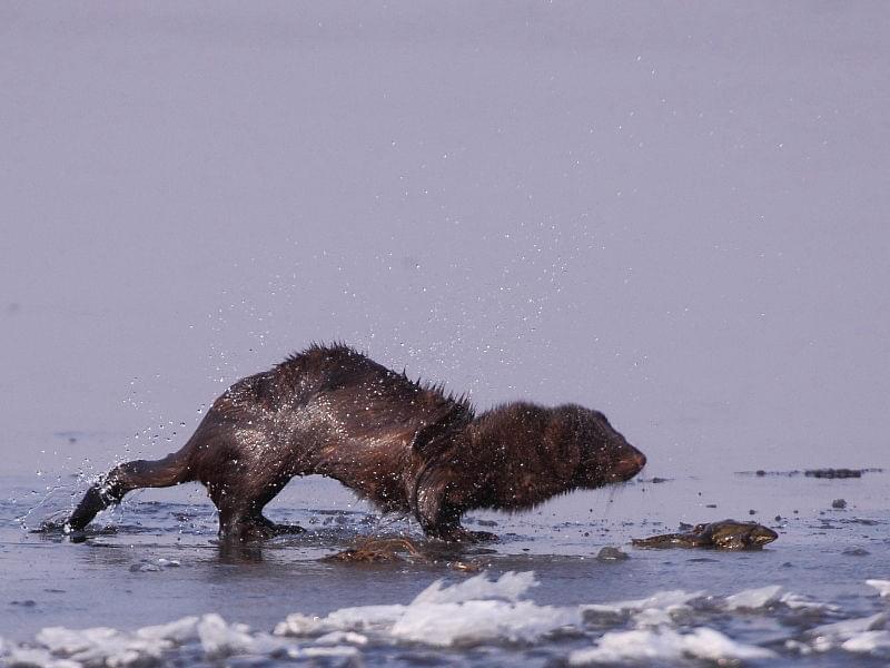 Przedwiośnie jest nad Narwią bardzo dynamiczne. Jednego dnia zamarznięta rzeka po której rolnicy ciągnikami wożą siano, a następnego niedostępne rozlewiska przykrywające lód potoku. W tym roku najlepszy sezon na bobry trwał 3 dni, wtedy obudzone słońcem zwierzęta można było podejść na kilka metrów. Nawet umówiłem się na zdjęcia ze znajomym leśniczym z mazur, tylko kiedy przyjechał w sobotę, rodzina bobrów miała do dyspozycji tak wielki przestrzenie wody, że o robieniu zdjęć nie było mowy. Sytuacje na szczęście uratowała norka, niezawodnie polując na żaby w jednym z narwiańskich zakoli. Jak się już trafi na to zwierzę łatwo je podejść w czasie gdy nurkuje. Po złapaniu zdobyczy zanosi je do gniazda i wraca mniej więcej w to samo miejsce. Fotografie norki pod słońce, ale inaczej się nie dało. Pozdrawiam