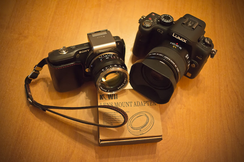 NEX-3 + Zeiss 1,5/50 ZM oraz G2 + 45mm f/2.8 MACRO obok siebie: