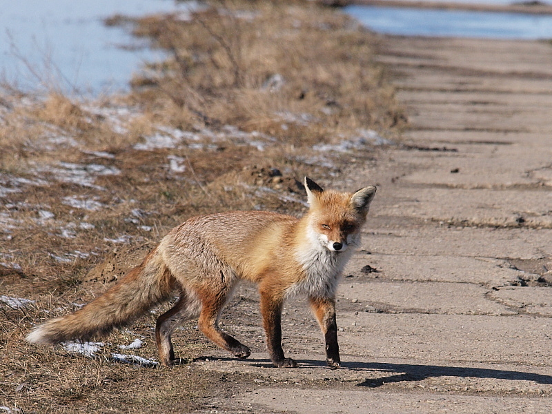 Kasprzyk, zdjęcia fajne, ale lis chociaż nie jest wściekły (chory na wściekliznę ma wodowstręt) jest chory na pewno. Zdrowy lis przed człowiekiem ucieka, dodatkow ten oczy ma jak u ślepego, jest chudawy a i futro idealne nie jest. Podobną przygodę miałem wiosną przy okazji focenia gęsi (chyba o tym pisałem), lis w ogóle nie bał się ludzi, trochę kulał a futro i oczy miał w doskonałej formie.