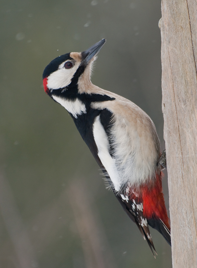 Gratuluję wszystkim fotek i spotkań z przyrodą. Dzisiaj także wziąłem wolne, 3 reklamówki porcji rosołowych i niestety efekty słabiutkie. Przed wejściem na teren spłoszyłem kilka myszaków i już się nie pojawiły. Na śniegu odciśnięte łapy jakiegoś wielkiego psa - żywi się jak mnie nie ma tym co pozostawią ptaki, wydaje mi się, że celowo ktoś wypuszcza go na noc, no bo raczej wilk mnie nie odwiedzaPo raz kolejny usiłuję sfocić dzięcioła, zawsze mam problem z ostrością, ilekroć w niego celuję - a przesiaduje u mnie dość często - nigdy nie jestem zadowolony z ostrości