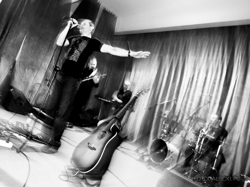 Dzisiaj miałem przyjemność wysłuchać koncertu grupy Blockheads. Musze z przykrością stwierdzić, że bardziej słuchać niż fotografować. Nie wiem jak można promować grupę (fotografia ) przy takich warunkach oświetleniowych ? Eh, a nadzieję miałem duże z tym związane, bo to przecież E-1 do testu, rybie oko i lightsphere na lampę też. No i właśnie, było tak ciemno, że cały czas musiałem używać lampki z dodatkiem oraz wys. ISO