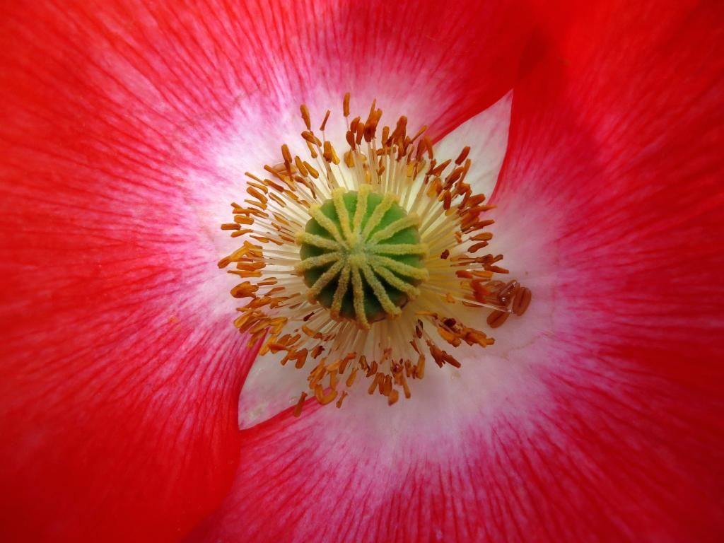 Widzę falowanie płatków, jakby sztorm wewnątrz kwiatu makowego.