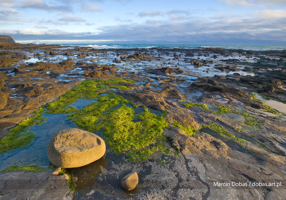 Catlins - kamieniały las na poziomo leżących warstwach skalnych - widoczne sa liczne spetryfikowane / trudne słowo wiem wiem... / pnie drzew, a gdzieniegdzie odciski liści sprzed 170 mln lat całość bardzo się ladnie prezentuje podczas odpływu - W tamtym rejonie gniazduje kolonia pingwinów żółtookich - ale nie robiłem im nawet zdjęć bo było strasznie dużo turystów i wolałem nawet nie podchodzić do pingwinów - żeby nie pojawiło się kilkudziesięciu naśladowców...
