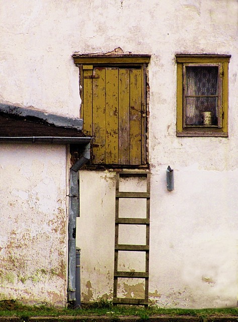 Poniżej - jeszcze bardziej niegościnny próg, już nawet drabinkę zabrali...