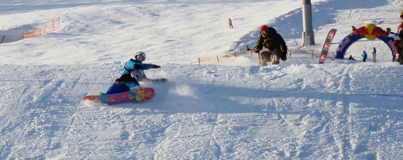 Teraz jest dużo lepiej. W zdjęciach sportowych największym problemem będzie z opóźnieniem wykonania zdjęcia po wciśnięciu spustu. Dlatego też w miarę możliwości zwiększ głębię ostrości (czyli większy numer przysłony) i postaraj się przewidzieć, gdzie będzie przejeżdzał zawodnik. Na to miejsce ustawiasz ostrość i trzymasz spust wciśnięty do połowy. Potem czekasz tylko na obiekt. Możesz oczywiście mieć problem z ustawieniem ostrości na śnieg, także ekspozycja może być przez to zafałszowana.
