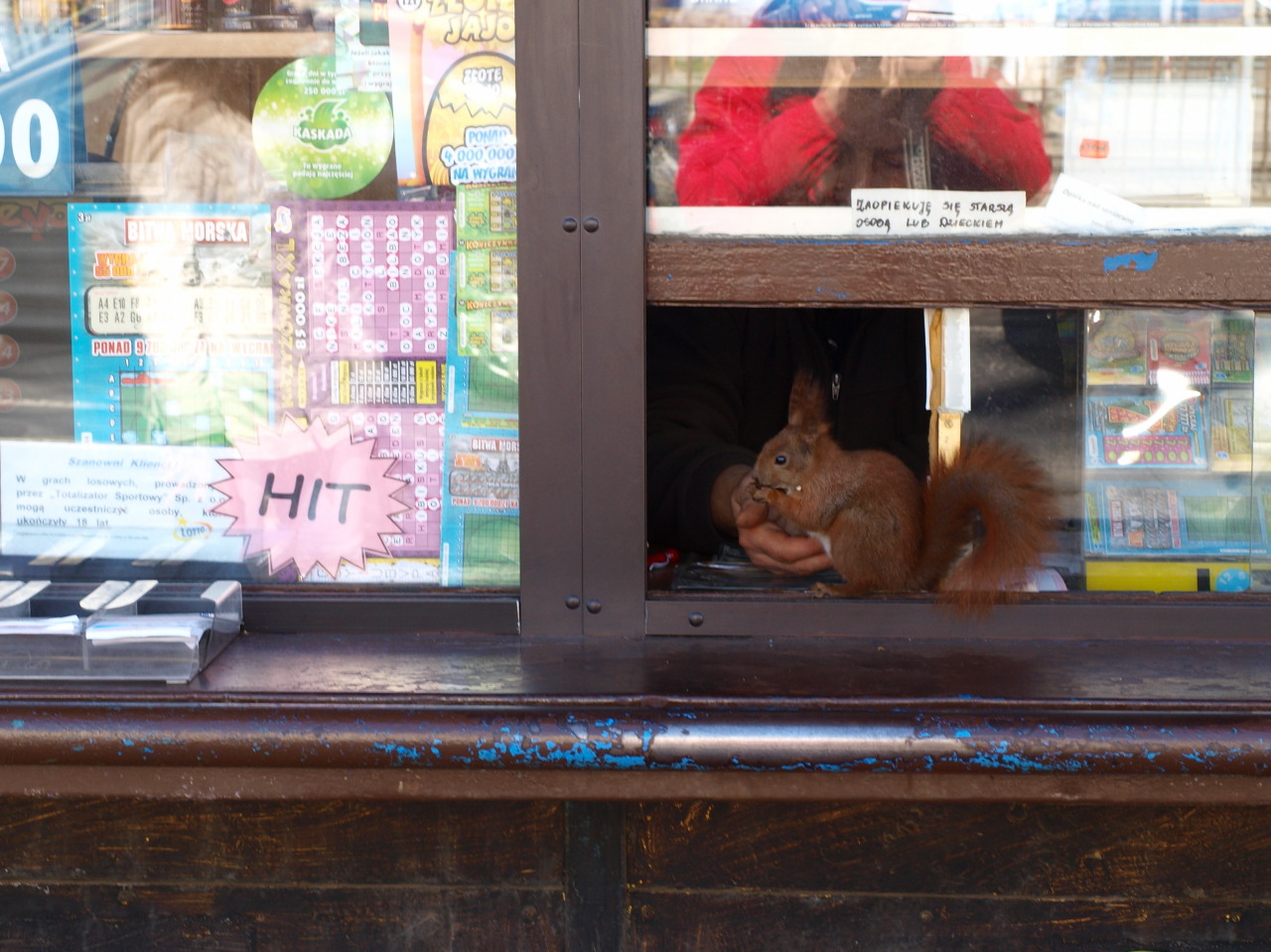 Mała wiewiórka przyszła do kiosku z gazetami........chyba po orzeszki, a ja ją Olkiem potraktowałem i mam![]()