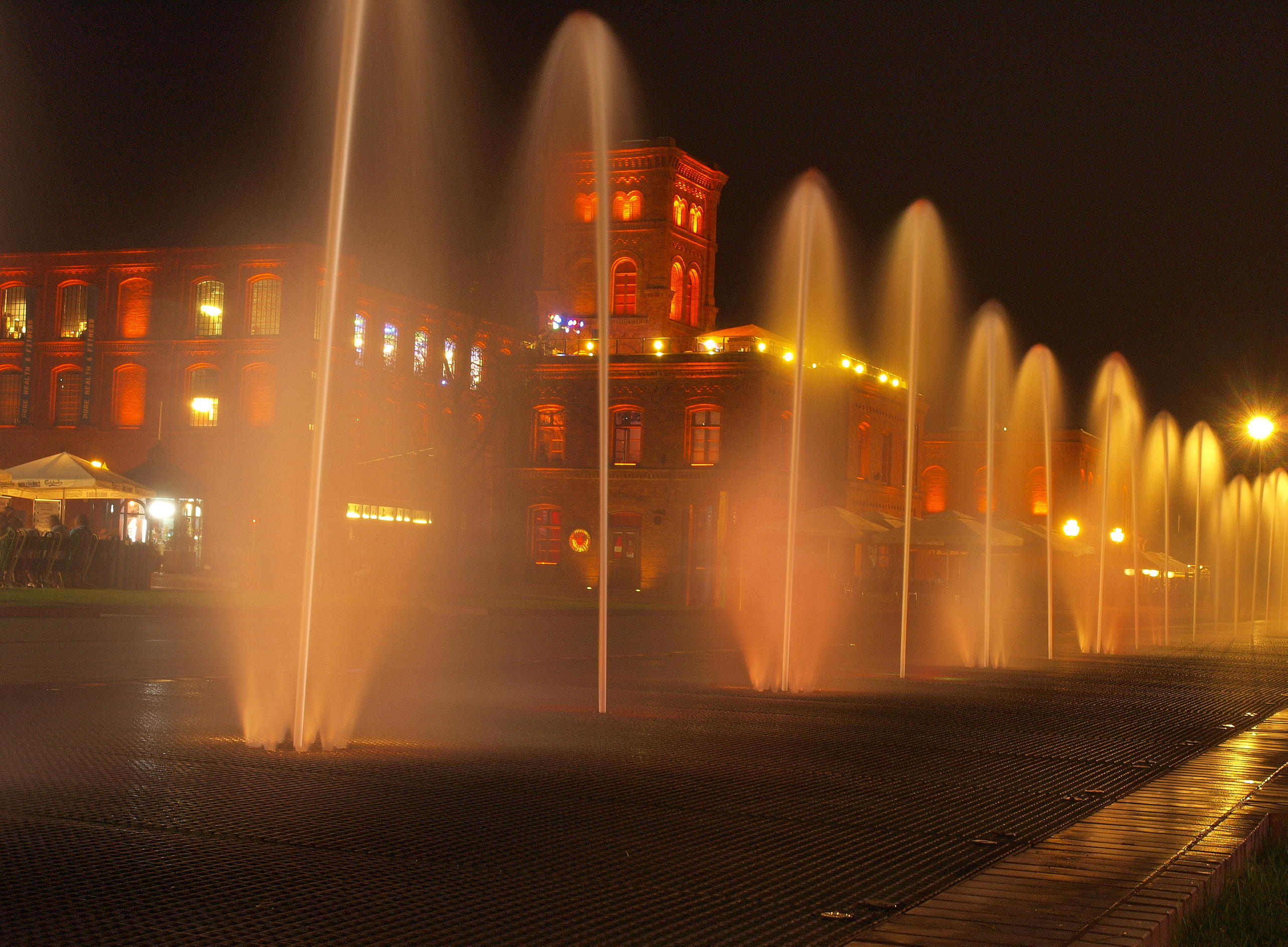 Dzięki kol.ro16. Manufaktura w Łodzi to niby miejsce oblatane, powszechnie znane, ale ma bardzo ciekawe połączenie architektury ze światłami i wodą. Tu można sobie potrenować takie ujęcia. Dodatkową atrakcją jest jeżdżący nini tramwaj na kołach.