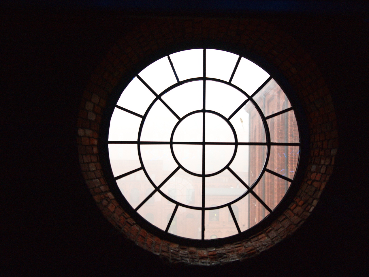 ID:	108438. Poszukując kolejnej okazji na foty poszedłem z Iwo na I piętro części muzealno- rozrywkowej(pod muzeum fabryki). Jest tak takie ciekawe okno nawiązujące do historii tego miejsca. W zależności od pogody(światła) potrafi dać bardzo ciekawy efekt. Ale podczas mgły i kiepskiej widoczności wygląda tylko tak 7.Widok na południe czyli dziedziniec 7Kliknij obrazek, aby uzyskać większą wersję