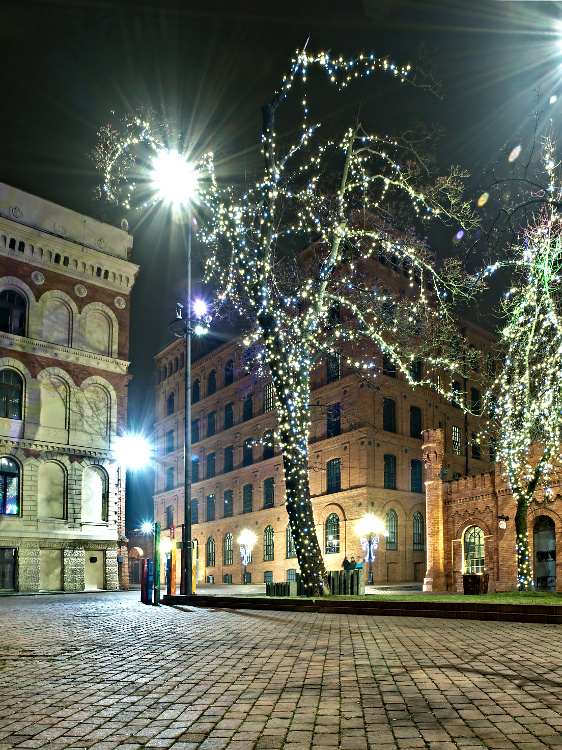 Taki kadr z Manufaktury, jest jednym z najciekawszych zrobiony w miejscu gdzie raczej nikt nie przeszkodzi. Przy wykazanej cierpliwości, można jeszcze upolować przejeżdżający co 30 min mały autobus. I trzeba to zrobić przy ciemniejącym niebie.