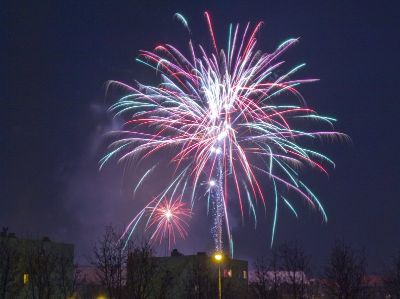 Któregoś razu nie miałem planów sylwestrowych, więc witałem Nowy Rok fotografując fajerwerki. Oto kilka z nich:
