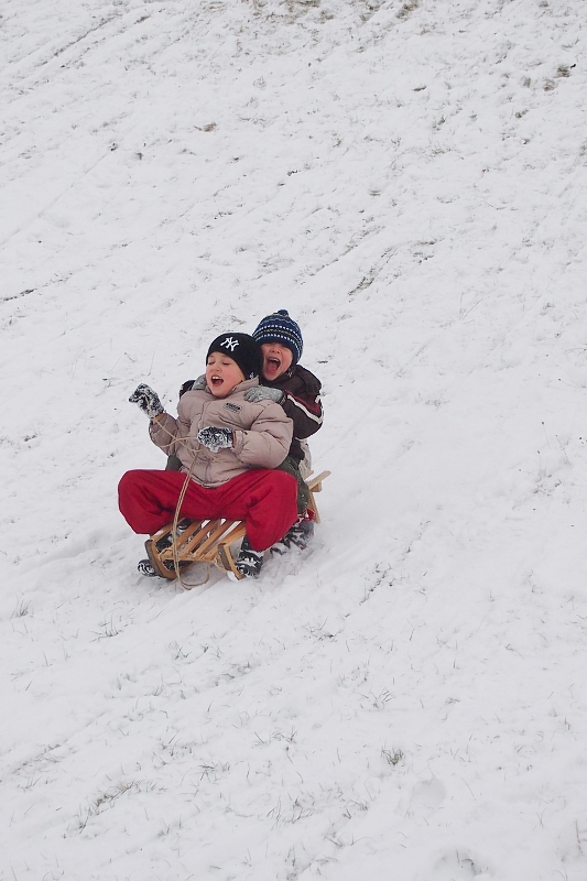 A jak dzieciaki jada na sankach - trzymaj je w jednym miejscu w kadrze, przez co rozmyjesz tlo i jeszcze uwadatnisz ruch