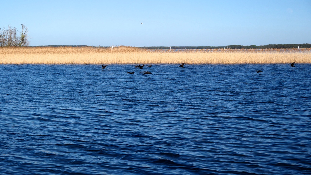 Moje pstryki z niestety minionej Wielkiej Majówki. Trochę wody z okolic Węgorzewa. Węgorapa zwana na tym odcinku kanałem. Mamry, wyspa Upałty z kormoranami.
