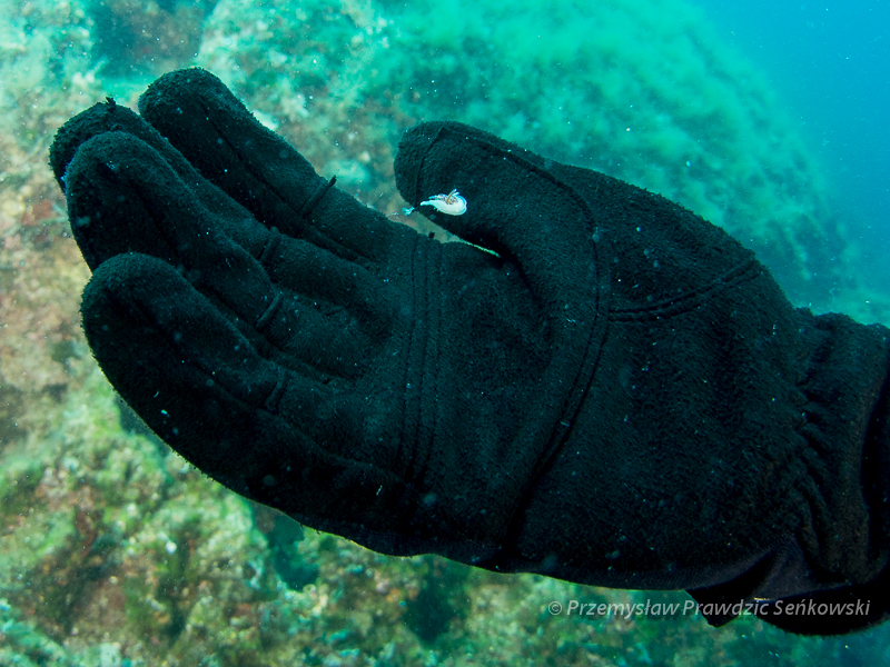 Na początek porozmawiajmy o rozmiarze. Ktoś machnął płetwą po dnie i na dłoni a dokładnie na kciuku wylądował ślimak. Ślimaczki w okolicach Hvaru mają przeważnie taki właśnie rozmiar.