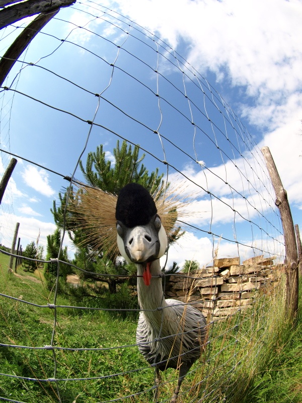 wczoraj byłem na wycieczce w zoo. Podczas robienia zdjęć żurawia koroniastego wpadłem na pomysł założenia do puszki fiszaja. Zdjęcia wyszły fajne ale coś się nie spodobało ptaszkowi i gwałtownie zaatakował obiektyw. Rąbnął dziobem w szkło aż echo poszło.