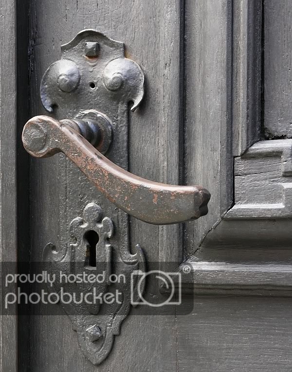 Ciekawy detal zamieściłeś. Podoba mi się światło. Nie podoba to, że w lewym górnym rogu jest zbyt mało światła (kierunek oświetlenie tworzy zbyt mały kąt z płaszczyzną drzwi, nie podoba ramka gruba oraz, jak na moje oko, klameczka u dołu jest zbyt na skraju i rozbija kompozycję troszkę. Ale ogólnie detal jest ciekawy.
