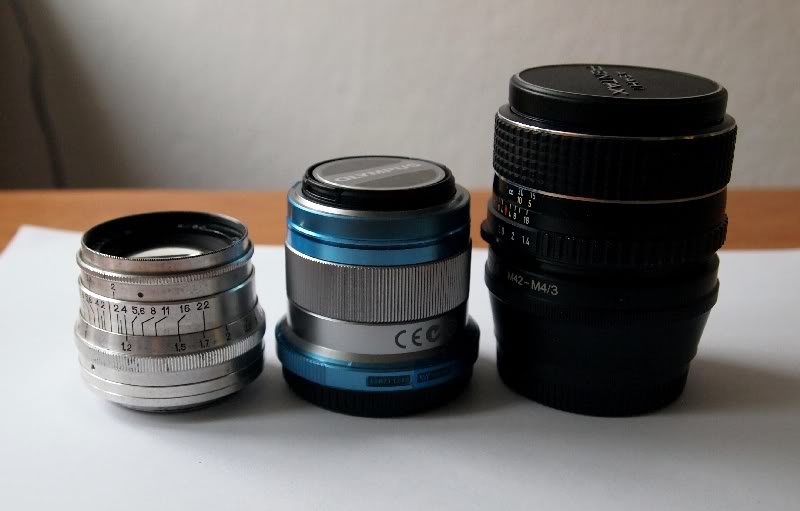 Tak jako ciekawostkę wrzucam małe porównanie wielkości obu obiektywów (na ostatnim zdjęciu widnieje jeszcze Jupiter-8 ):