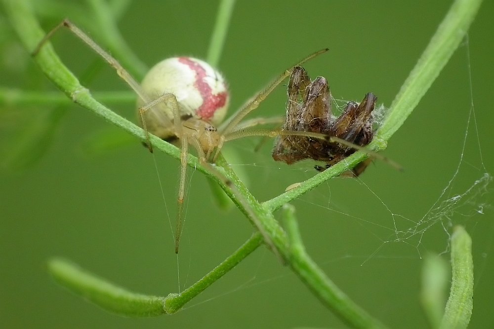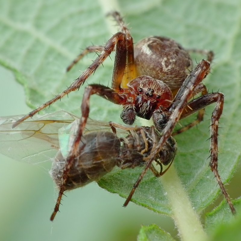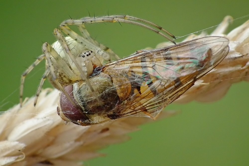 - i jakiś pajak z rodziny omatnikowatych wysysający schwytanego bzyga:
