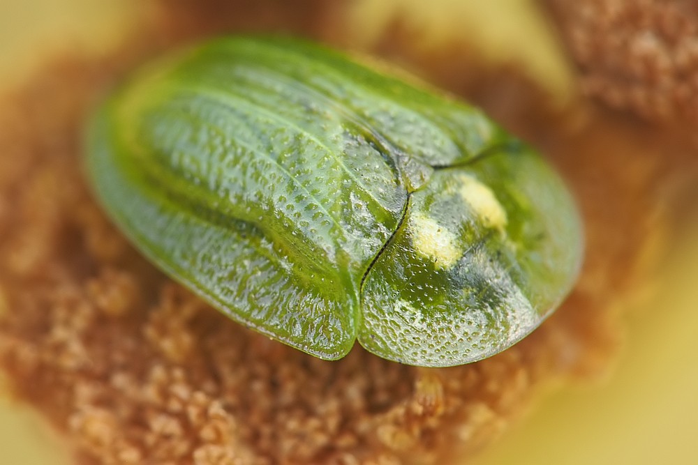 W dzisiejszym odcinku - tarczyk, którego przydybałem w nietypowym dla niego miejscu - na źdźble trawy. Miałem dzięki temu rzadką okazję pokazania go od spodu: