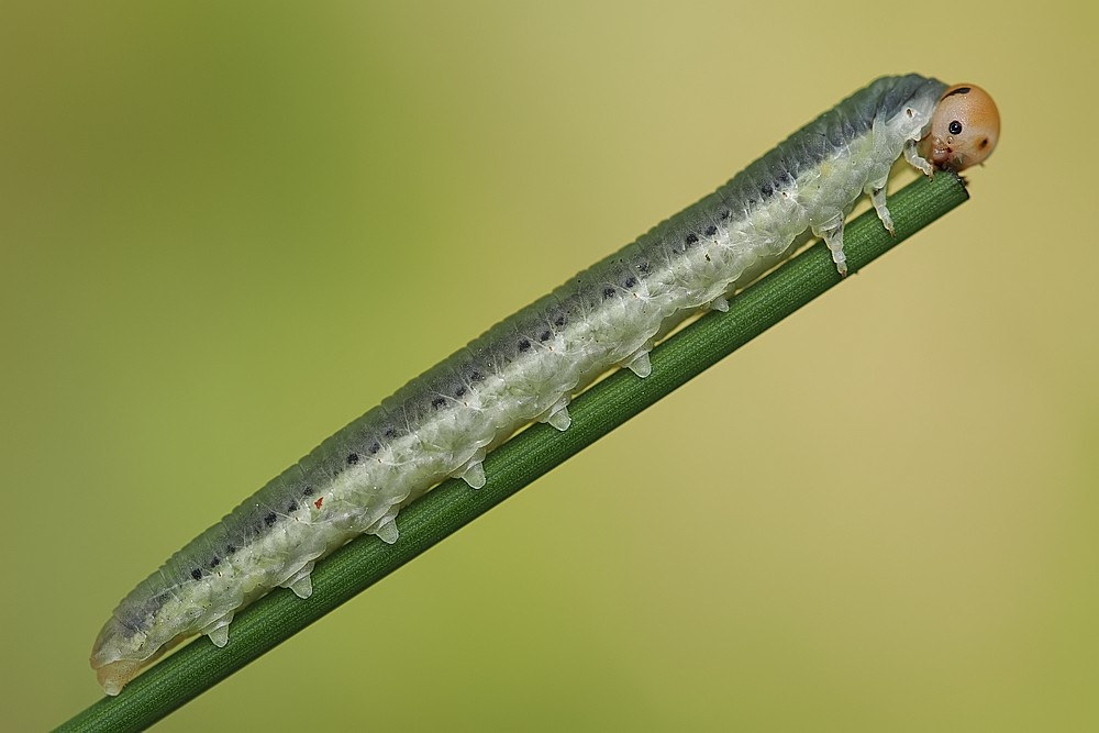 Kolejna larwa rośliniarki - zdecydowanie pechowa - nie ze coś coś ją skaleczyło (ja się do tego nie przyznaję), to jeszcze niesie na sobie jajo pasożytniczej rączycy dla której larwy po jej wykluciu się będzie stanowić żywą spiżarnię...