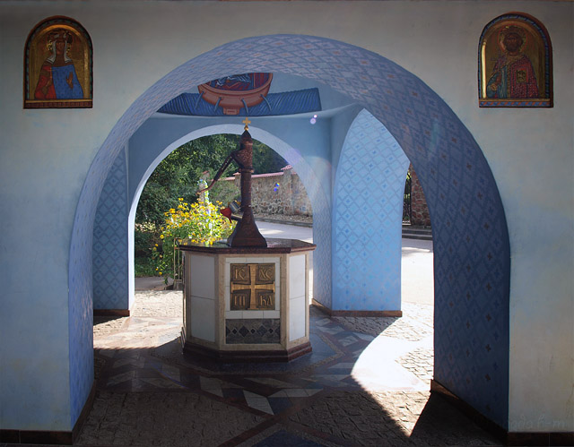 U podnóża wzniesienia, na którym stoi cerkiew jest postawiona pompa, a nad pompą piękna murowana kopułka, która z daleka już rzuca się w oczy.