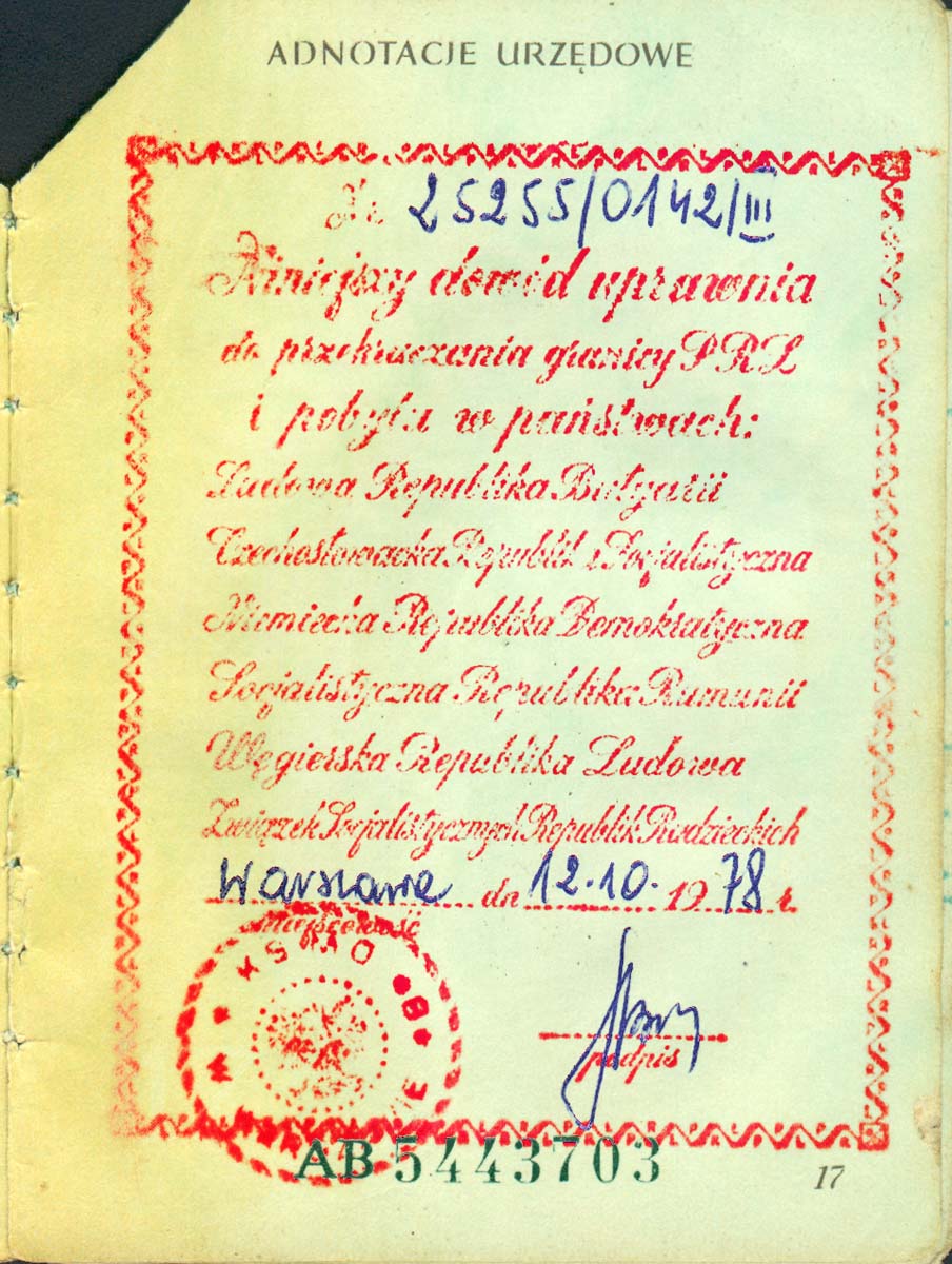 Grzebnąłem w szufladzie i wpadł mi w rękę mój stary dowód osobisty. Szczególnym sentymentem darzę stronę 14 (wielka pieczęć z USC o zawarciu związku małżeńskiego) i stronę 17, która pełniła funkcję paszportu