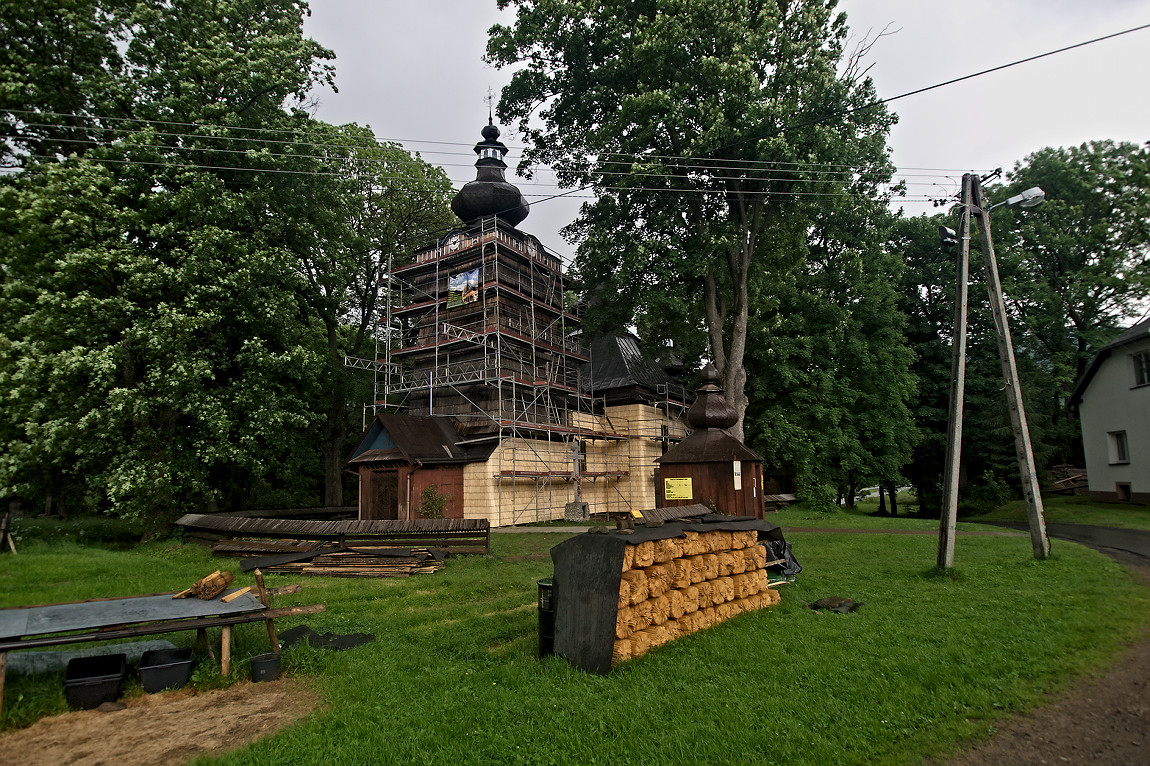 I jakby na udokumentowanie, że nie zaginądwa ujęcia cerkwi prawosławnej we wsi Hańczowa. Nigdy nie publikowane. Robione w ulewnym deszczu.