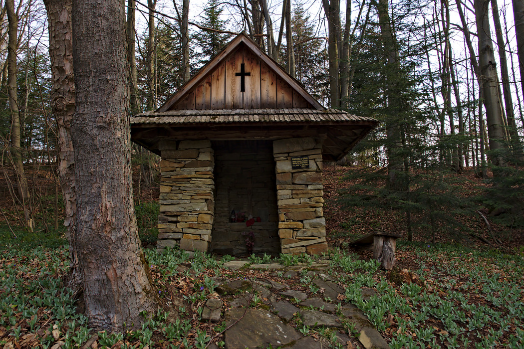 O Lipna, super, mój ulubiony (kolejny) kawałek śladów osadnictwa beskidzkiego. Ta kapliczka została odrea... odresta... odrens... no, odnowiona przez myśliwych z regionu. Dawniej też służyła za kapliczkę w której mogli schronić się zbłąkani wędrowcy (lub właśnie myśliwi).