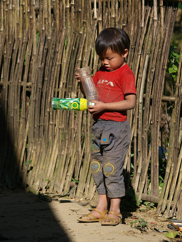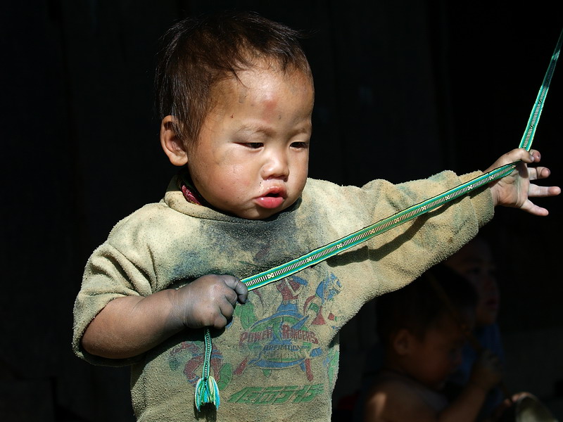 Tak wyglądają dzieci mieszkające w wioskach górskich. Nie spotkaliśmy dzieci bawiących się zabawkami, tylko butelkami po napojach pozostawionych zapewne przez turystów, plastelinę zastępuje im namoczona glina, bawią się często ze zwierzętami na podwórku lub w ciekach wodnych w których często płyną ścieki, słodycze zastępuje im żuta trzcina cukrowa. Niestety tak to wygląda, dzieci na szczęście wyglądają zdrowo.