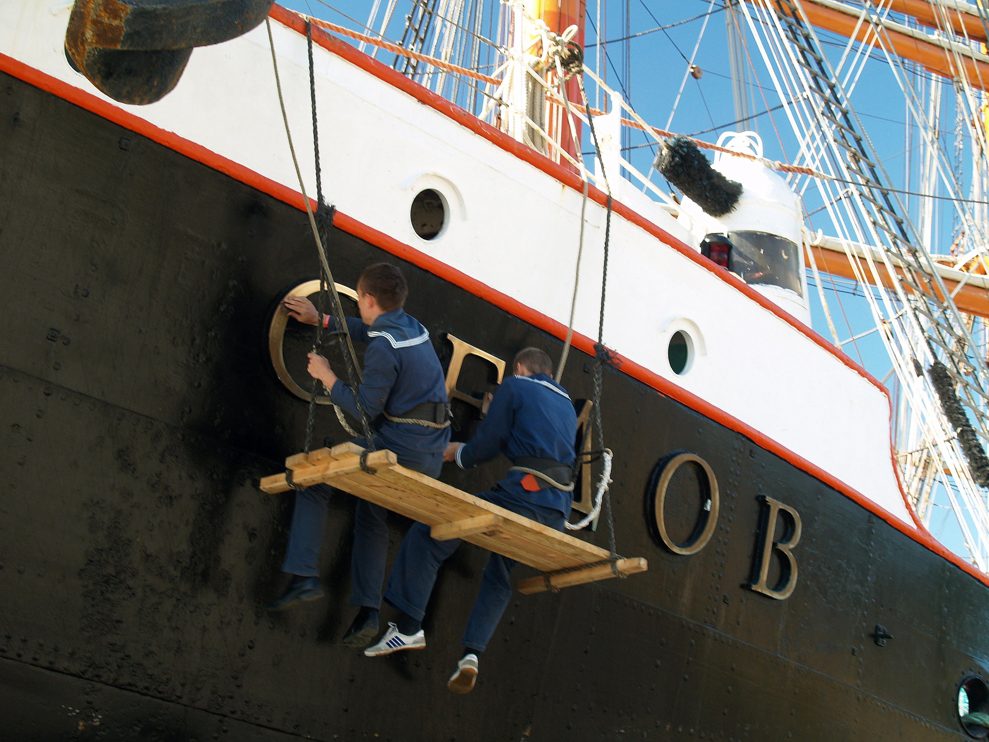 Matros-y z STS Kruzenshtern przy nagelbank-u....