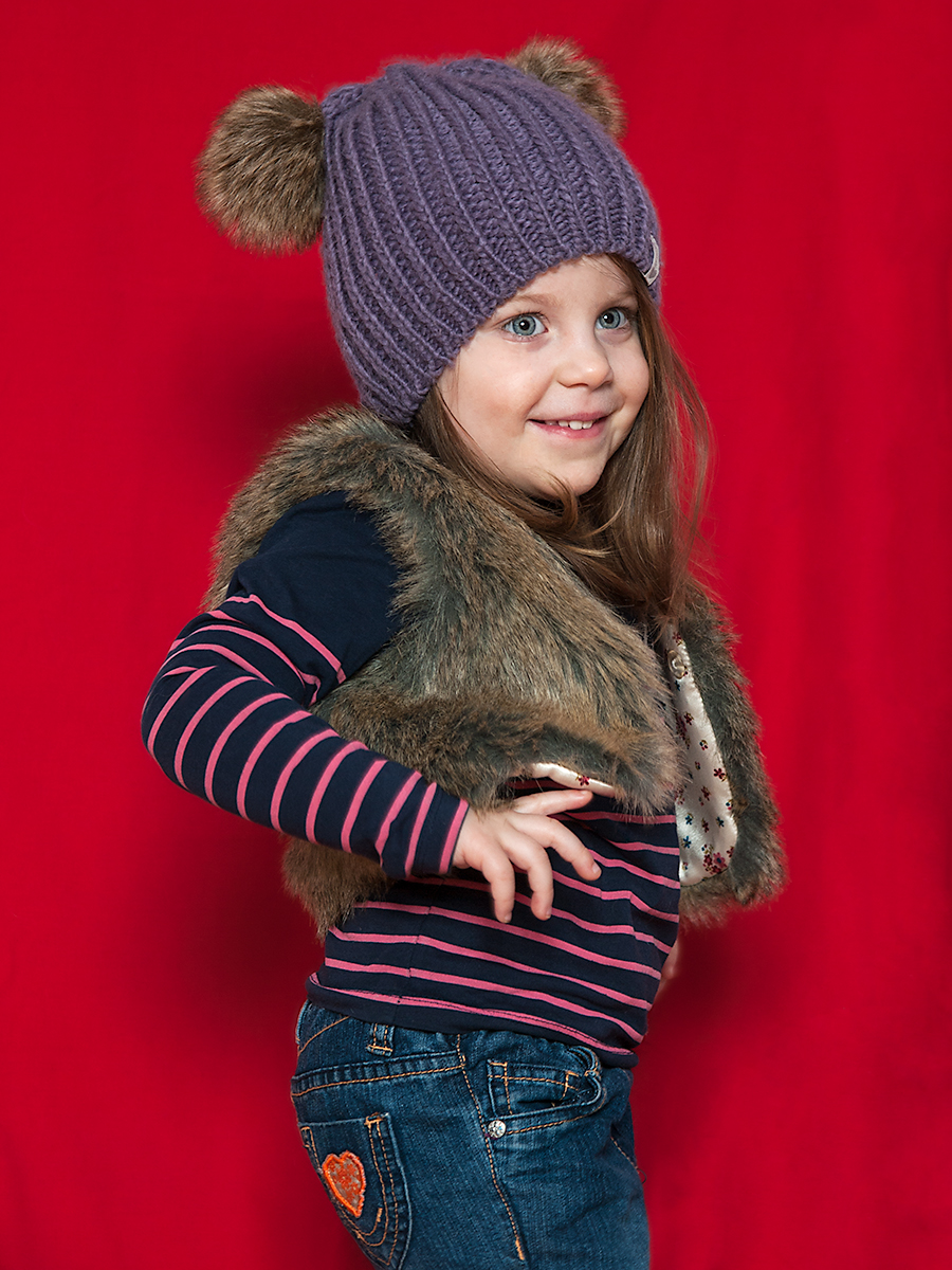 Modelka śliczna, oświetlone też całkiem dobrze (moim skromnym zdaniem). Proponował bym modelkę troszkę od tła oddalić, cień zniknie.