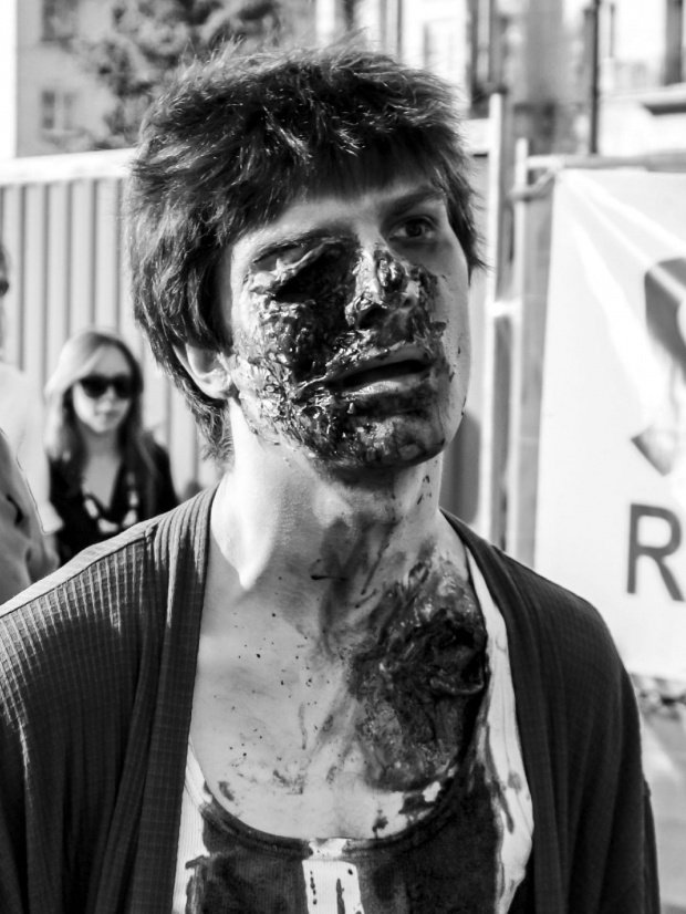 Podoba mi sie to zwątpienie na jego obliczu-ogólnie mało ludzi było wczutych w konwencje na tyle by sie jak zombiaki dłuzej jak pare minut zachowywać, ale i tak fajnie to wyszło wszystko